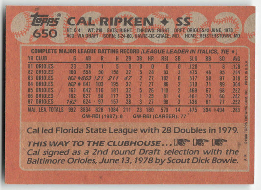 Sold out1988 Topps #650 Cal Ripken