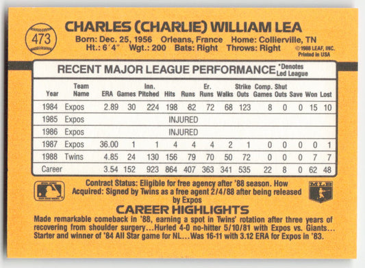 1989 Donruss #473 Charlie Lea Minnesota Twins 1539