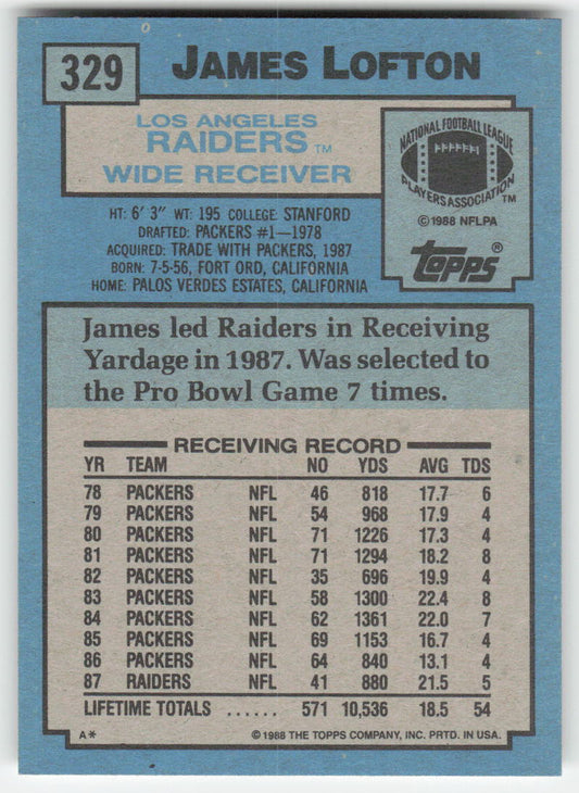 1988 Topps #329 James Lofton Los Angeles Raiders FB1-90