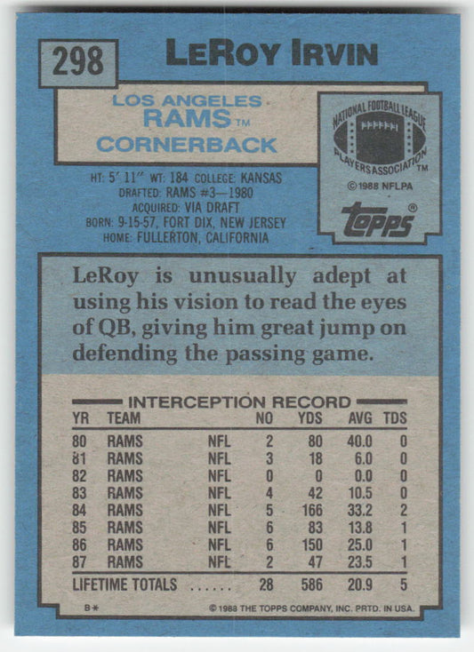 1988 Topps #298 LeRoy Irvin Los Angeles Rams FB1-94