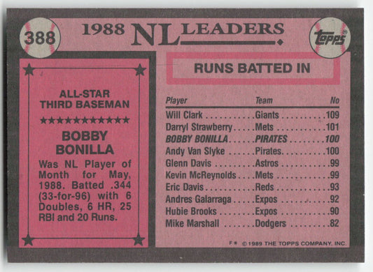 1989 Topps #388 Bobby Bonilla Pittsburgh Pirates 1062