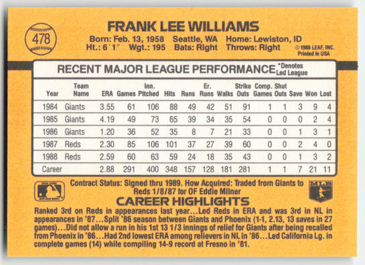 1989 Donruss #478 Frank Williams Cincinnati Reds 1540