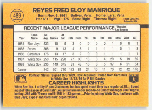 1989 Donruss #489 Fred Manrique Chicago White Sox 1541