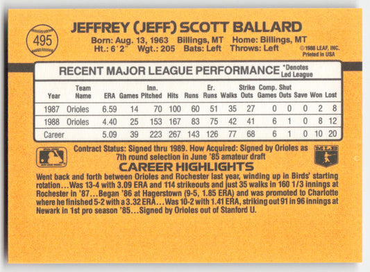 1989 Donruss #495 Jeff Ballard Baltimore Orioles 1542