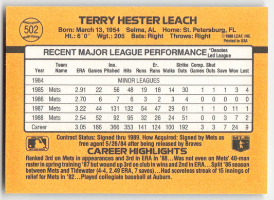 1989 Donruss #502 Terry Leach New York Mets 1543