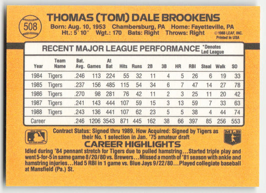 1989 Donruss #508 Tom Brookens Detroit Tigers 1544