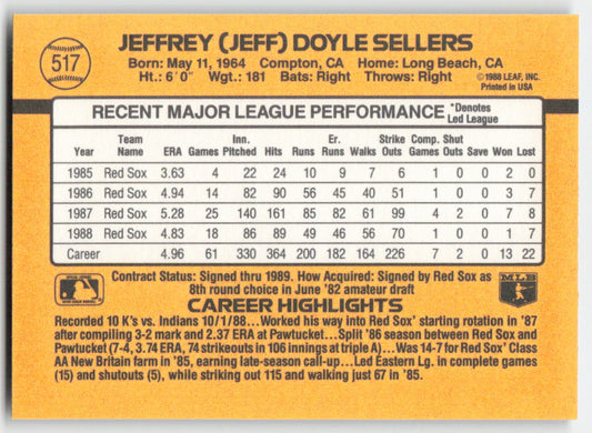 1989 Donruss #517 Jeff Sellers Boston Red Sox 1546