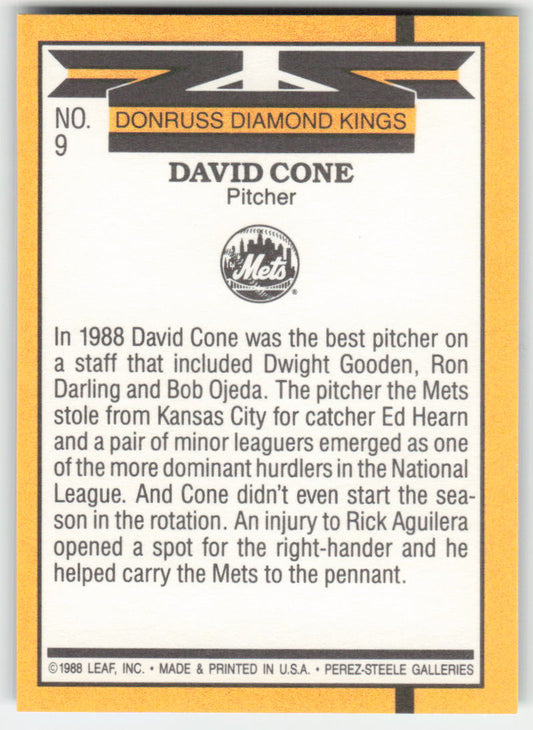 1989 Donruss #9 David Cone Diamond King New York Mets 1552