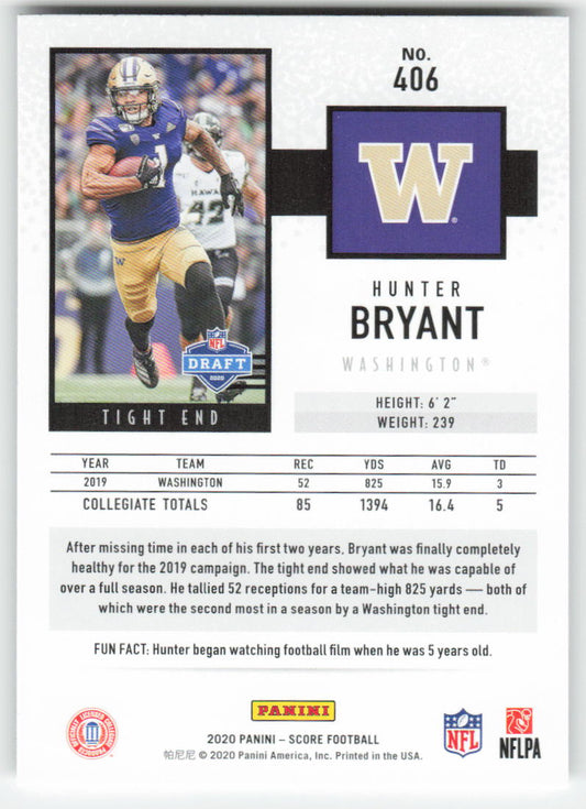 2020 Score #406 Hunter Bryant Washington Huskies Rookie FB1-484