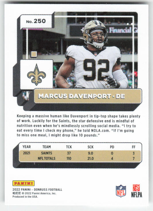 2022 Donruss #250 Marcus Davenport New Orleans Saints 1693