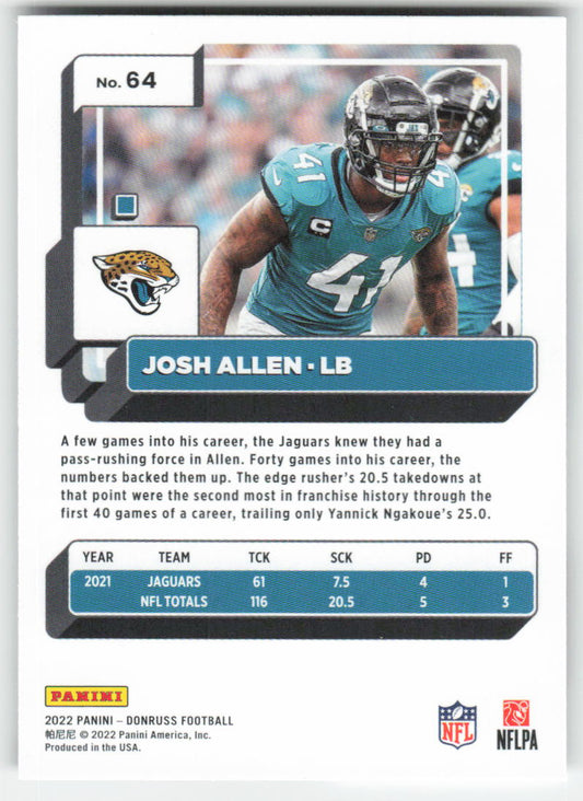 2022 Donruss #64 Josh Allen Jacksonville Jaguars 1703