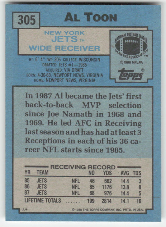 1988 Topps #305 Al Toon New York Jets FB1-51