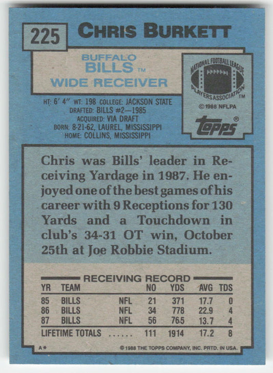 1988 Topps #225 Chris Burkett Buffalo Bills Rookie FB1-53