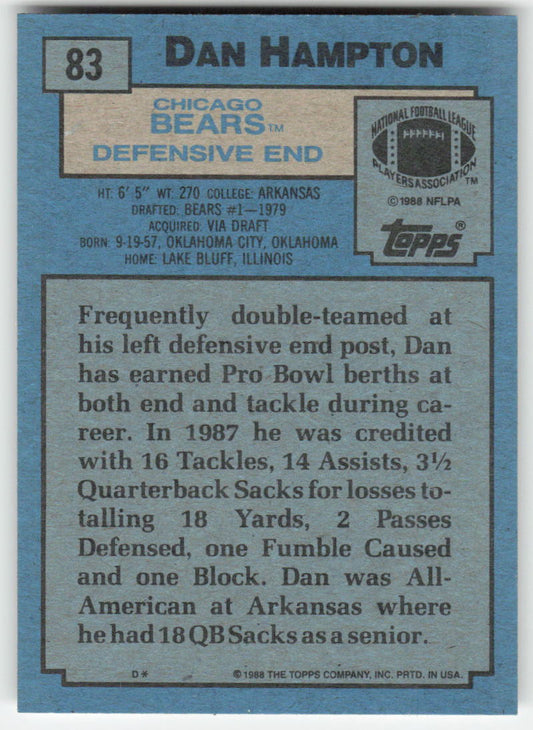 1988 Topps #83 Dan Hampton Chicago Bears FB1-54