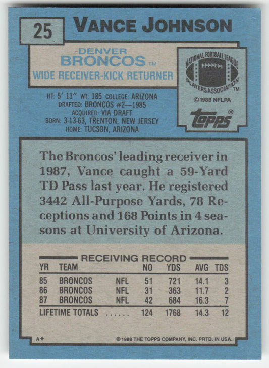 1988 Topps #25 Vance Johnson Denver Broncos FB1-55