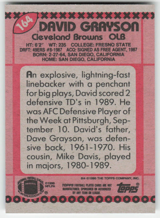 1990 Topps #164 David Grayson Cleveland Browns Rookie FB1-58