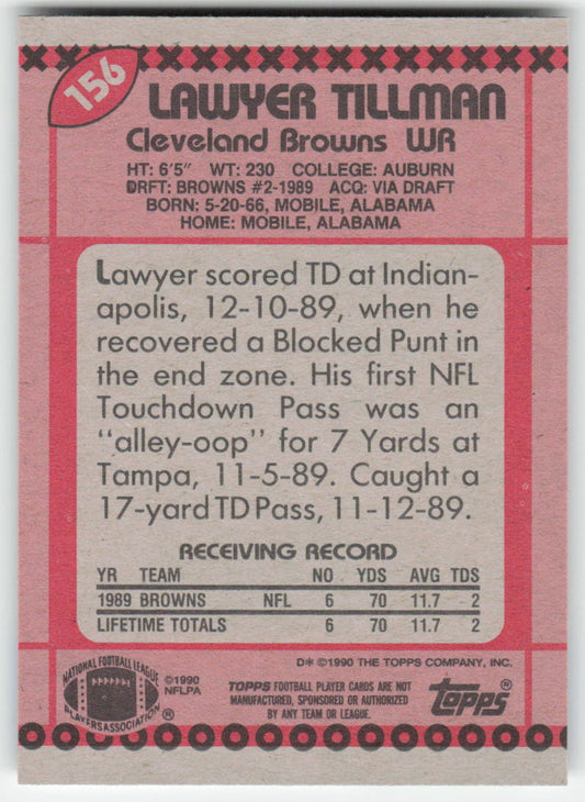 1990 Topps #156 Lawyer Tillman Cleveland Browns Rookie FB1-62