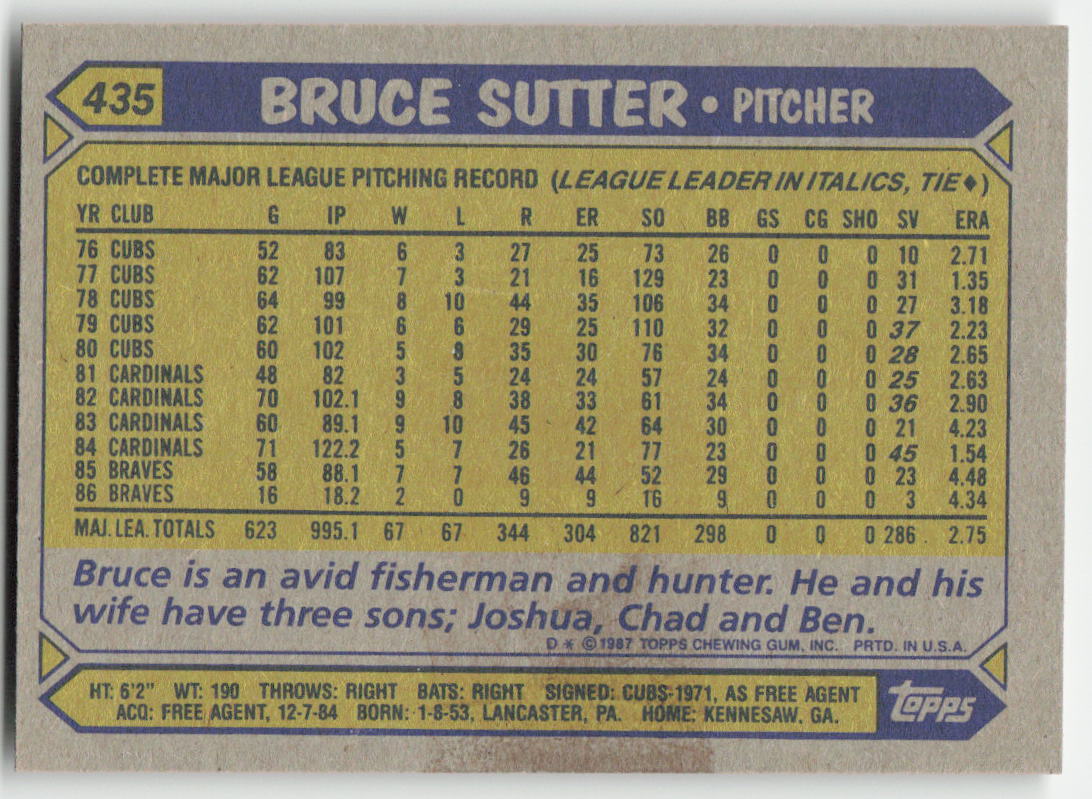 This is a nice example of a 1987 Topps #435 Bruce Sutter
