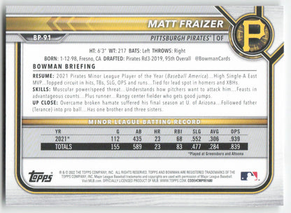 2022 Bowman #BP-91 Matt Fraizer Prospect