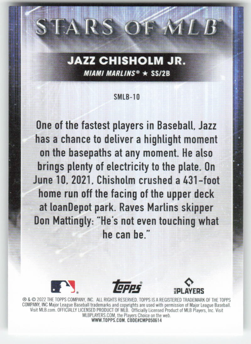 This is a nice example of a 2022 Topps #SMLB-10 Jazz Chisholm Jr. Stars of MLB