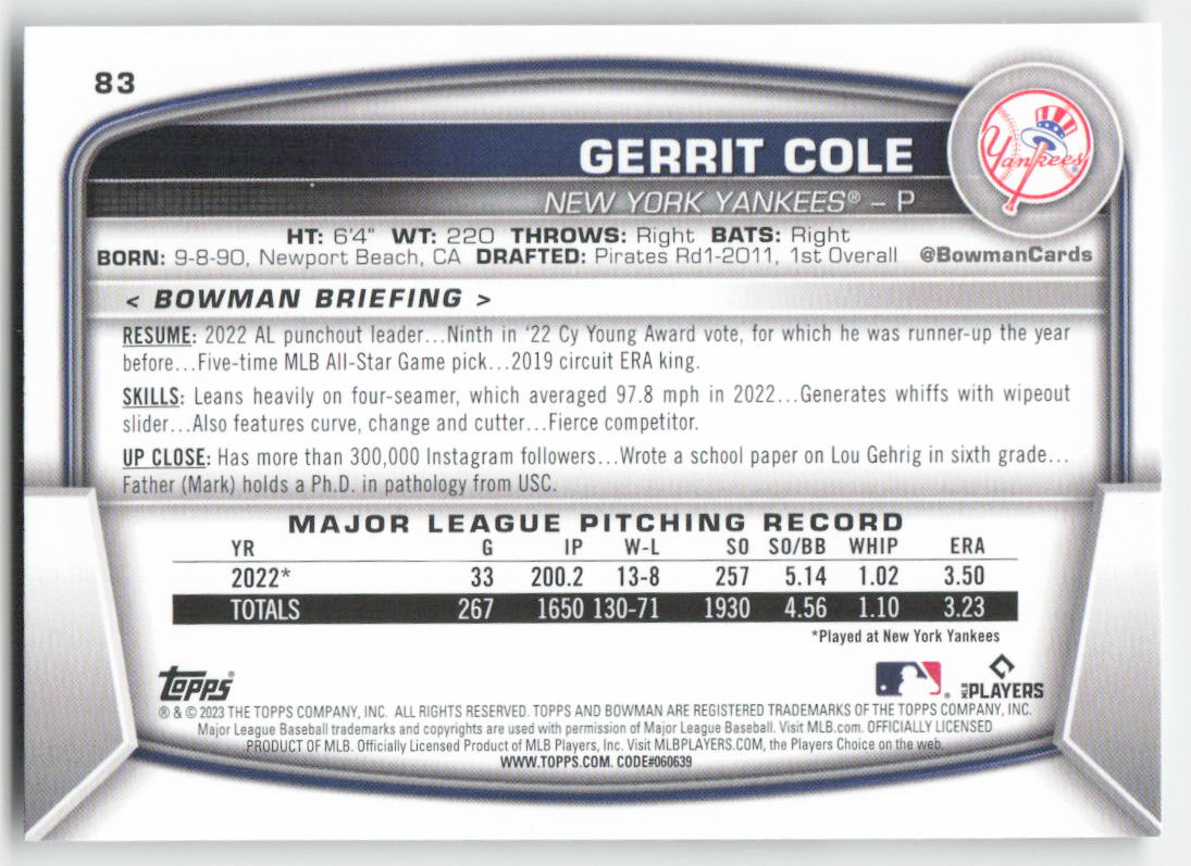 2023 Bowman #83 Gerrit Cole
