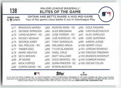2024 Topps #138 Elites of the Game: Ohtani and Betts Share a Hug Mid-Game 920