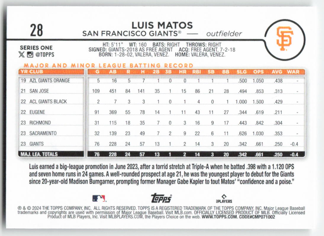 2024 Topps #28 Luis Matos