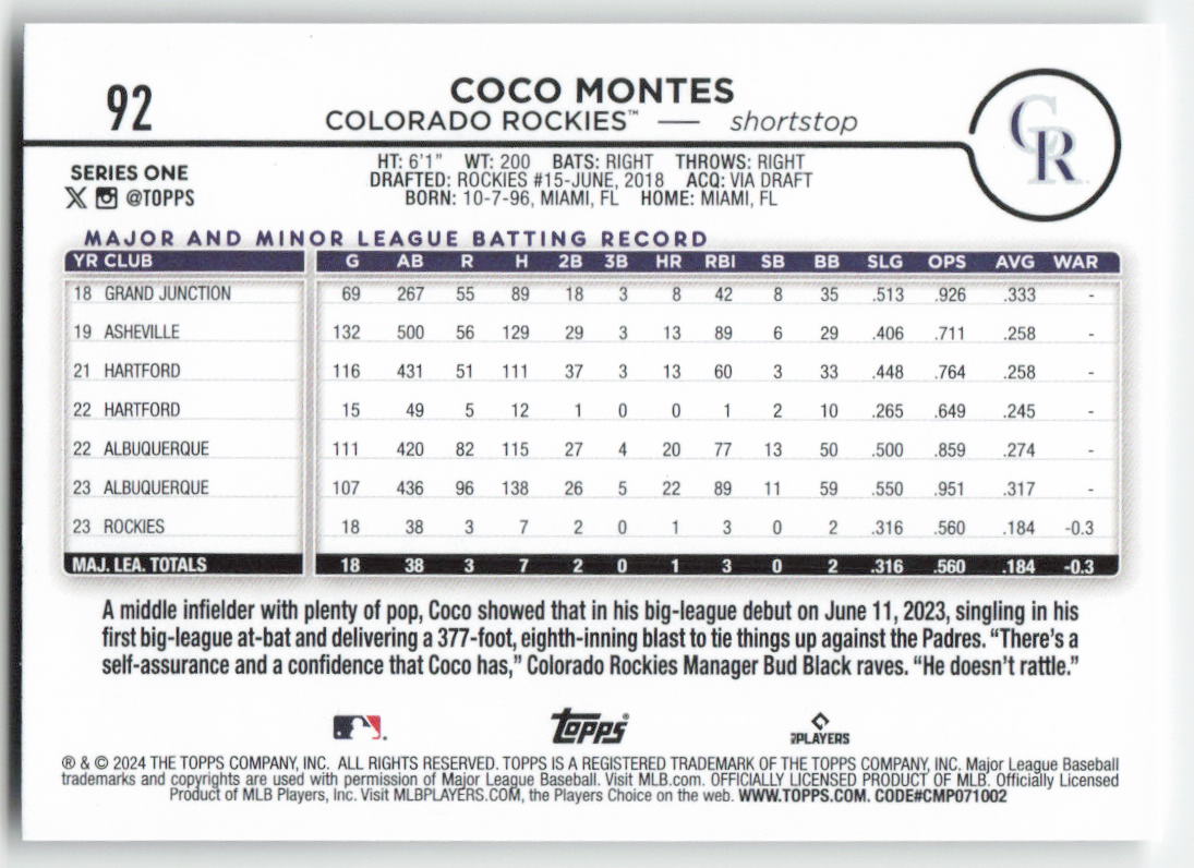 This is a nice example of a 2024 Topps #92 Coco Montes