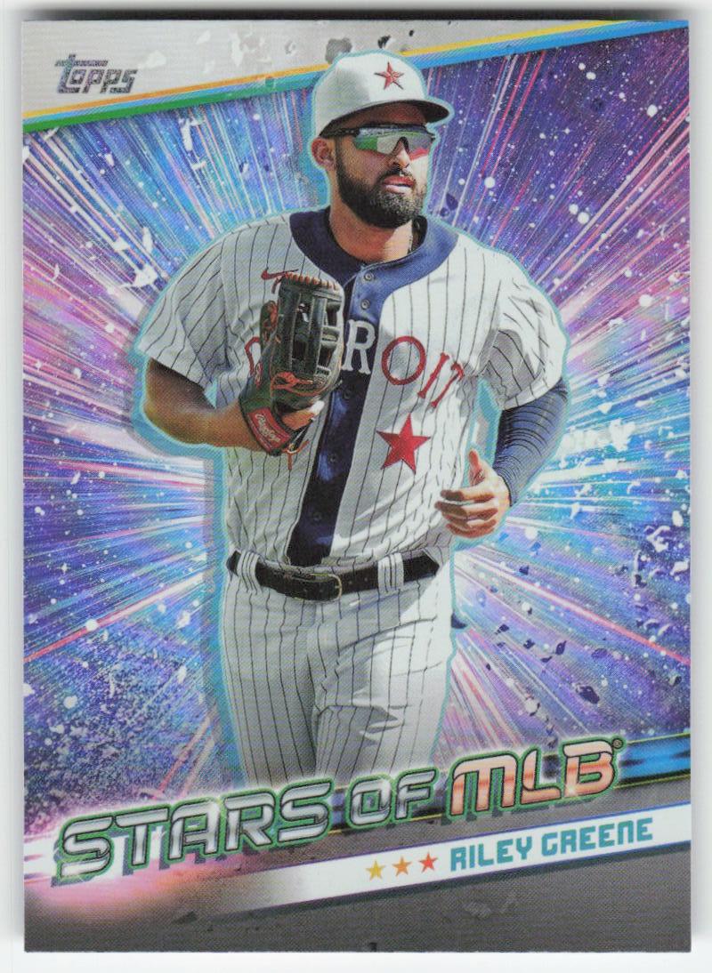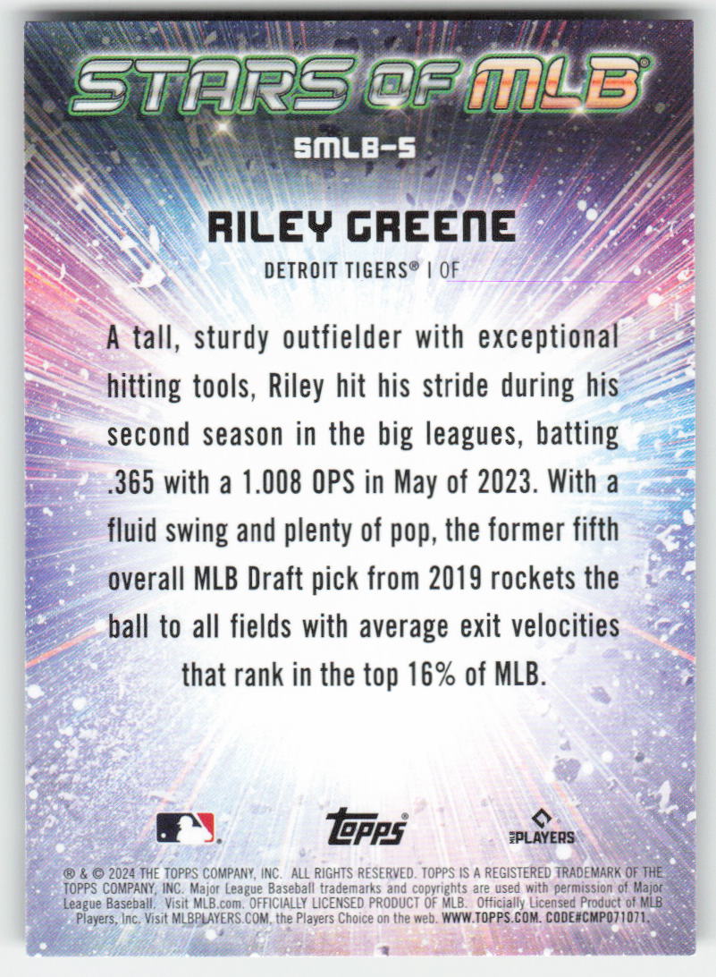 This is a nice example of a 2024 Topps #SMLB-5 Riley Greene Stars of MLB